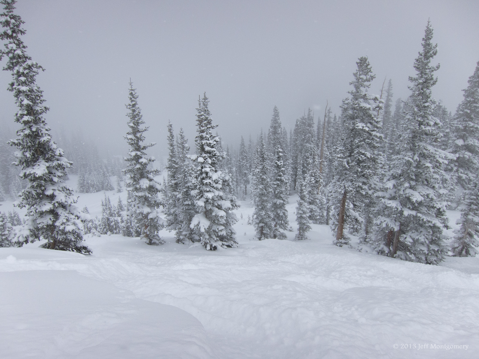 For me the upper part required single turn, stop, single turn stop. Then I could start linking turns near the trees. Pretty good depth here, maybe 15" to 20" in spots: